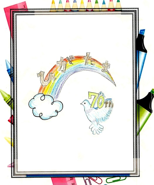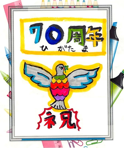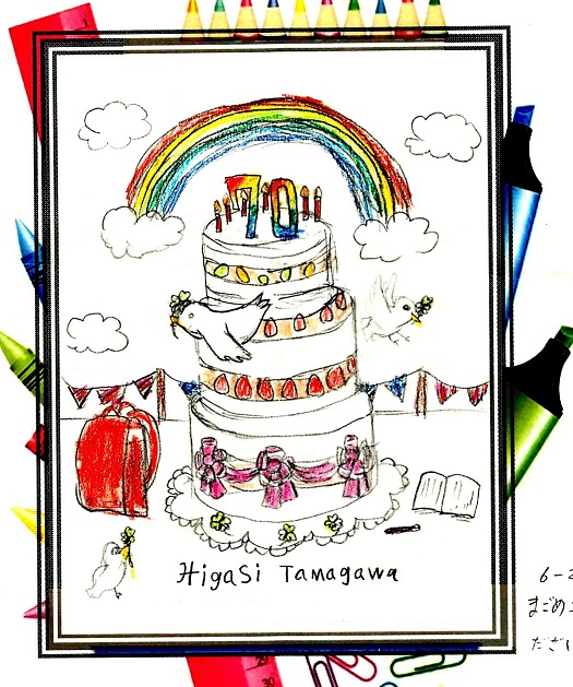開校70周年記念行事の一つとして、子どもたちからイラストを募集しました。お祝いの気持ちを込めた作品がたくさん集まりました。その中から5点を選び、70周年のシンボルとして、様々な場面で活用していくことにしました。