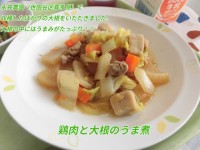🍁献立🍁 菜めし・鶏肉と大根のうま煮・青菜のおひたし・ぶどうゼリー・牛乳