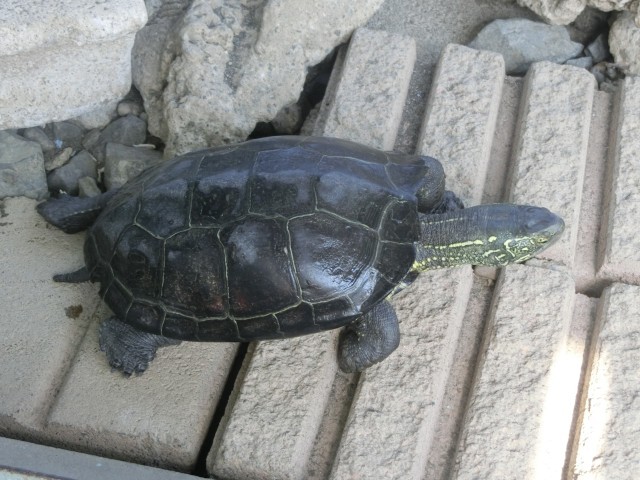 カメは夏餌をたくさん食べ、冬に備えます。そのため、水がすぐに汚れてしまうため、定期的な水替えが必要です。今日は時間をたくさんかけて、水替えをしました。水をたくさん池の中に出すと、池の横にある穴が水を出してくれる仕組みになっています。池のにおいもすっかりとなくなり、カメも気持ちよさそうに活動しています。