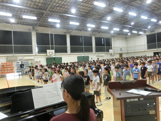 2学期が始まりました。子どもたちの元気な挨拶が聞こえてくると、学校が始まったんだなあ・・と先生たちもわくわくしています。暑熱対策工事が終わった体育館の始業式では、校長先生のお話、校歌斉唱の他、新しくひがたまの仲間になった2名のお友達の紹介がありました。長い2学期、元気に乗り切っていきましょう!