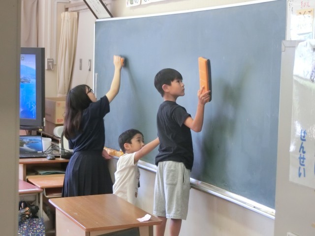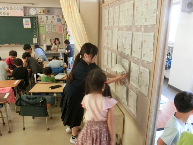 本校では、毎年中学生の職場体験を受け入れています。本年度も今日から3日間、2名の生徒が来てくれました。主に1年生の教室で、子どもたちと遊んだり活動したりしながら過ごしています。