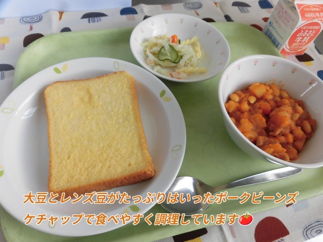 🌰献立🌰 フレンチトースト・ポークビーンズ・きゅうりのツナサラダ・牛乳