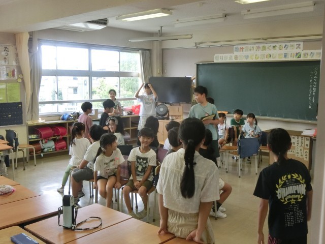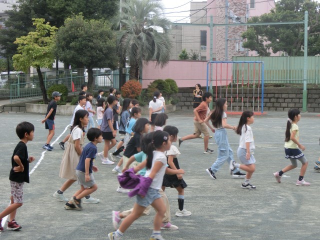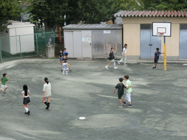 今日の朝は、たて割り班遊びの日です。前日の大雨の影響で校庭が心配でしたが、本校のグラウンドは大変水はけがよく、周りの部分以外はコンディションも回復していたので、無事活動を行うことができました。久しぶりに涼しさを感じる中での活動となりました!