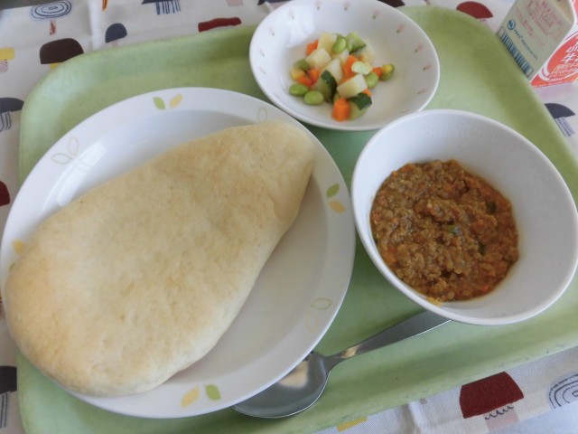 🌰献立🌰 ナン・キーマカレー・コロコロサラダ・牛乳