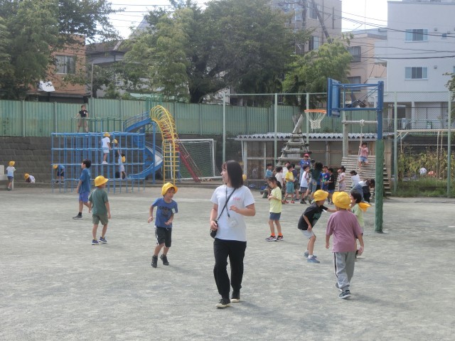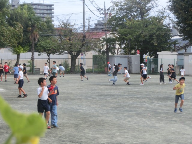 昼休みの様子です。ここ最近は、半そででも肌寒い陽気になってきました。子どもたちが外に出て遊ぶ人数が、増えてきた気がします。先生も遊んでいます。