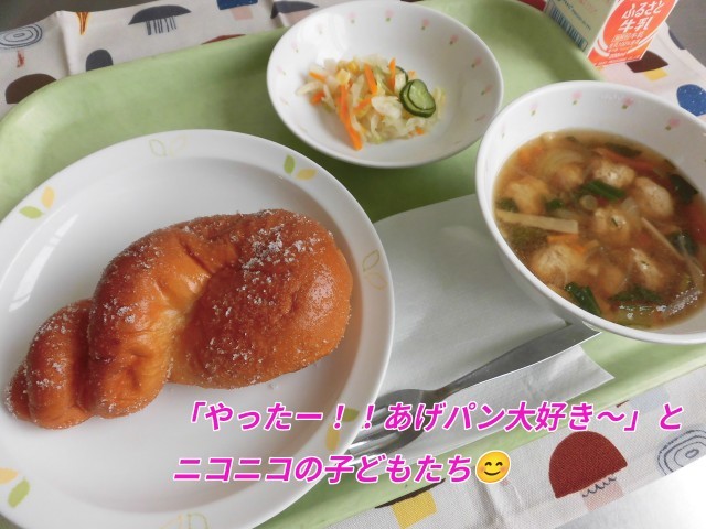 🌰献立🌰 あげパン・肉団子入り春雨スープ・フレンチサラダ・牛乳