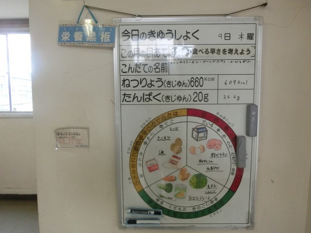 学校には、「栄養黒板」というものがあります。毎日、給食委員会の担当の子どもたちが掲示を変えています。これを見ると、その日の給食の栄養がわかるようになっており、毎日見ているととても勉強になるものです。こういったことも、委員会のお仕事の一つでもあるのです。