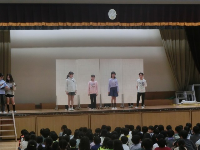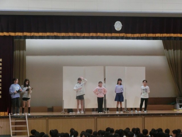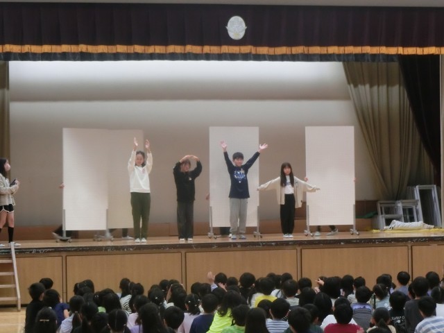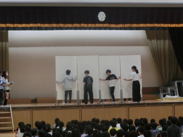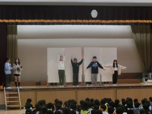 今日の朝は、集会委員会によるゲーム集会がありました。最初のポーズの後、集会委員が仕切りで隠し、次のポーズが最初とどう違うかを当てるクイズでした。すごく盛り上がっていました!