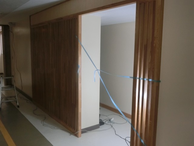 日曜日に工事を行い、間仕切りが取れて廊下が広くなりました。これから検査が入るため、使用できるのはもう少し先ですが、予定通り10月末には竣工予定となります。とてもきれいになりました!