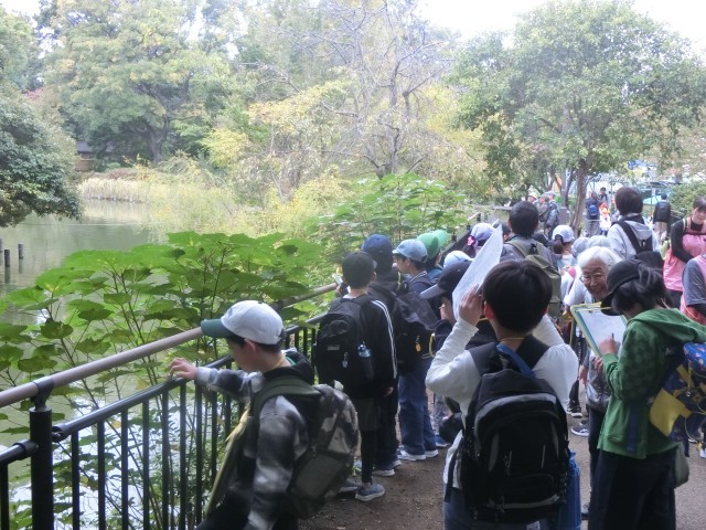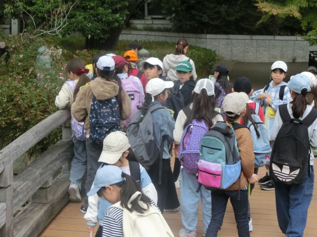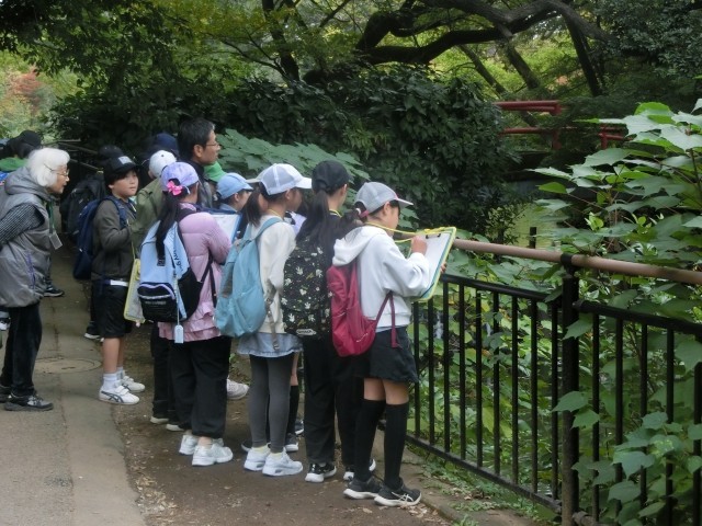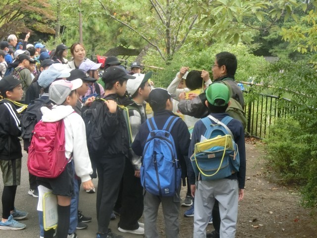 今日の4年生の学習では、城南学習支援グループの方々のご指導のもと、秋の洗足池観察が行われました。夏と比べた自然の違いや、生き物の違いなどを観察していました。