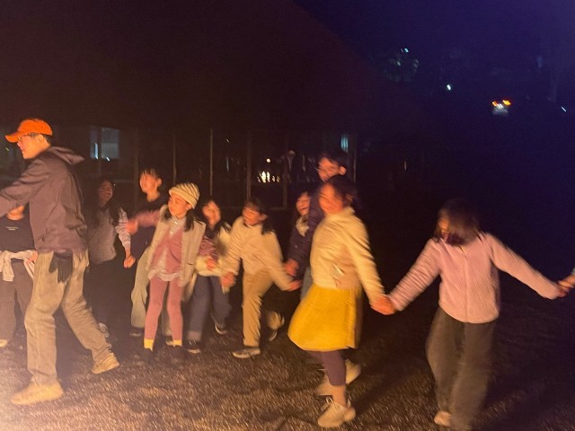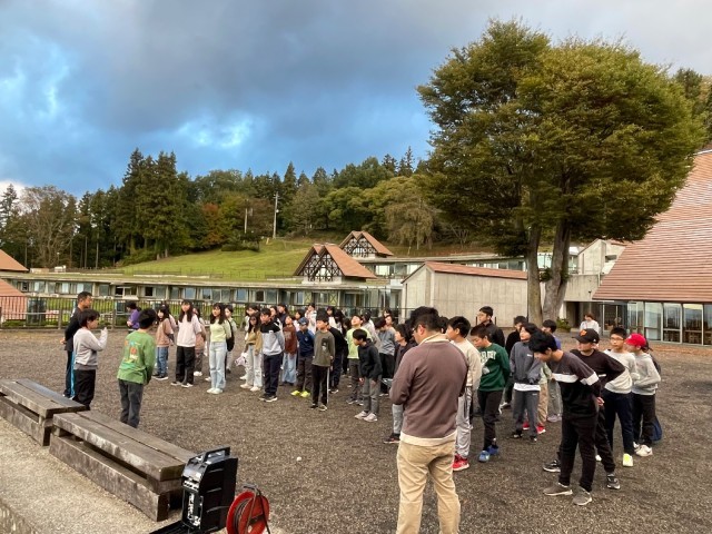 昨日の夜は、カレー作りを行いました。その後はキャンプファイヤー。2日目の朝を迎えています。心なしか眠そう・・?現在、朝食を食べています。