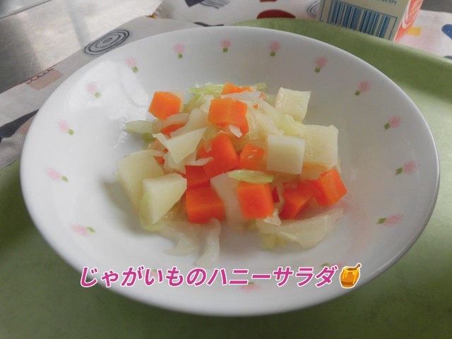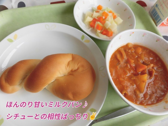 🍠献立🍠 ミルクパン・トマトシチュー・じゃがいものハニーサラダ・牛乳