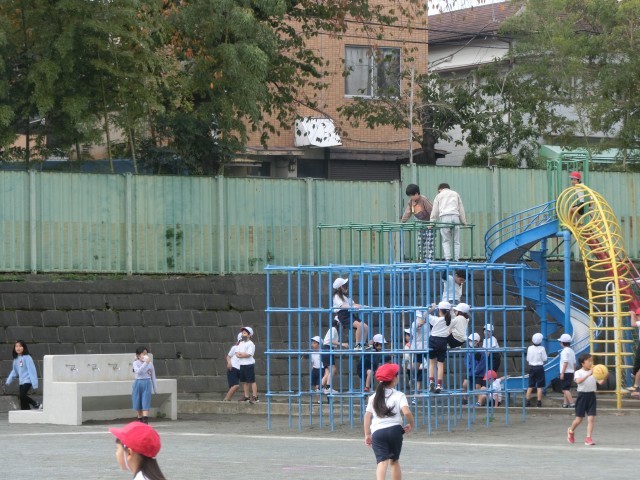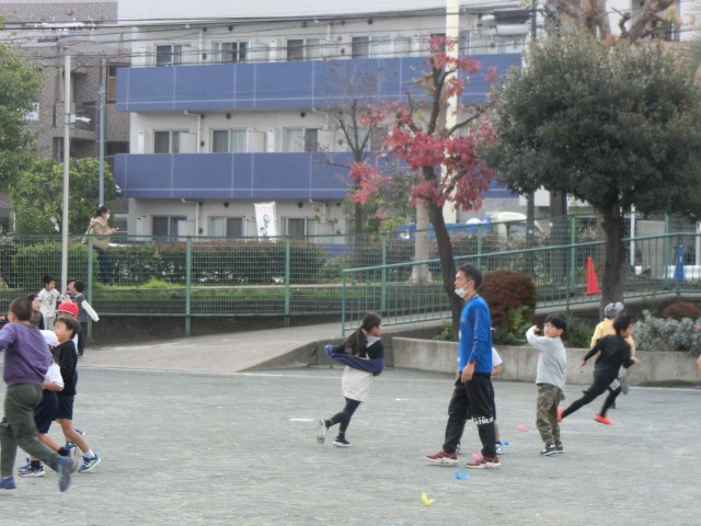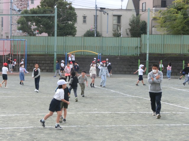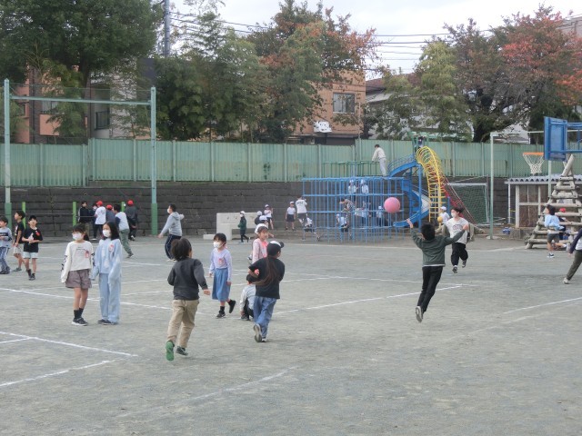 昨日から学級閉鎖も明け、子どもたちが元気に外で遊ぶ姿も多くみられるようになりました。この時期、ちょうどよい気候で、外遊びにはちょうどいい時期です。先生も一緒になって、楽しく遊ぶ姿が見られます。