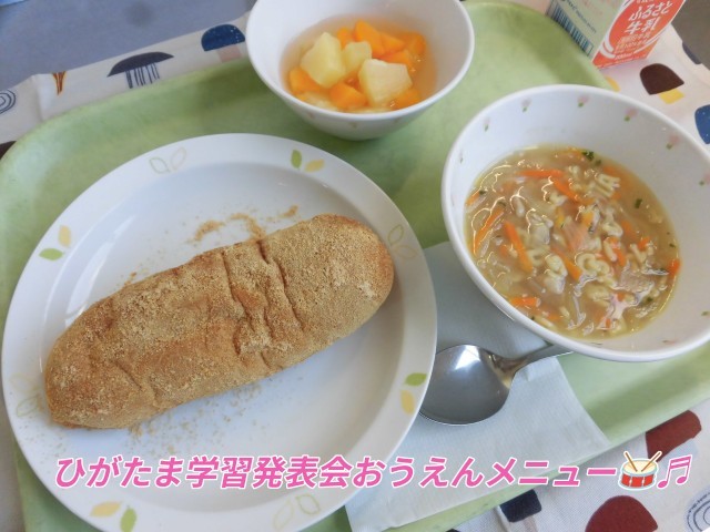 🥁献立🥁 きなこあげパン・ABCスープ・フルーツポンチ・牛乳