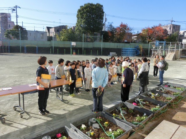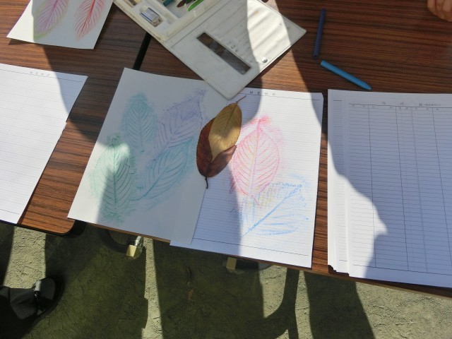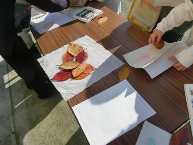 今日は、2年生が城南学習支援グループの方々のご指導のもと、校庭の自然探しを行いました。本来は春にやる予定でしたが、延期があって今日になりました。学校には落ち葉が今たくさん落ちています。子どもたちは校庭の植物の様子を改めて観察したり、落ち葉を上手に写しとったりしながら、秋を感じ、楽しんでいる様子を見ることができました。