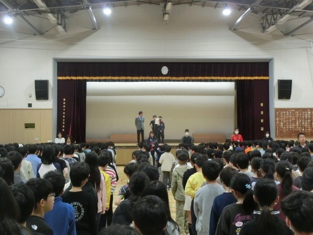 今日の全校朝会は、6年生の活躍について校長先生からお話がありました。併せて、表彰も行われました。気が付けばもう12月。時のたつのは本当に早いものですね。