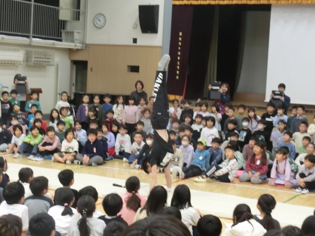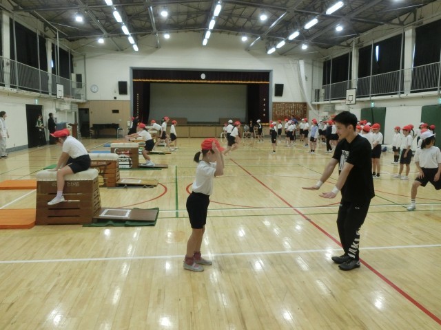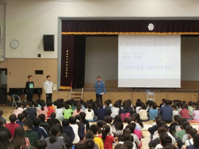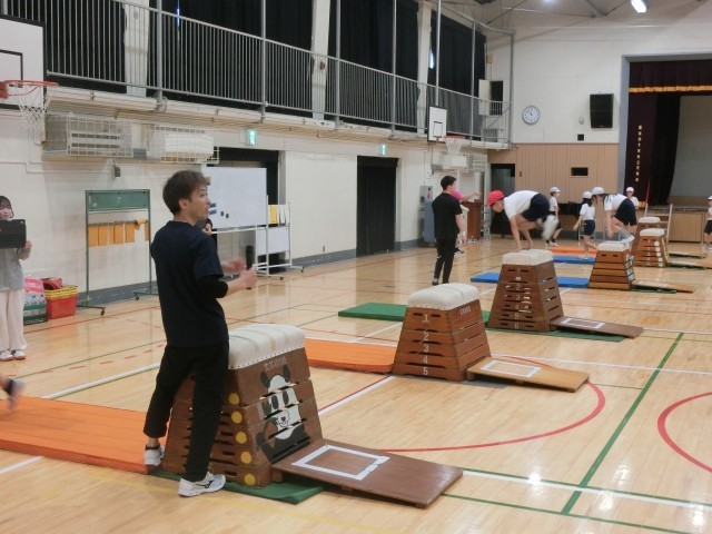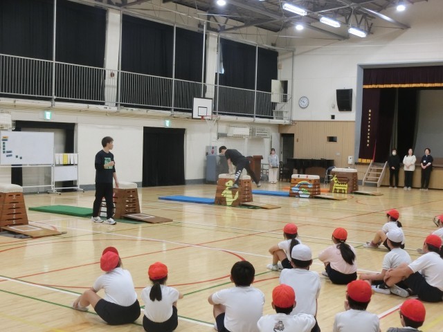 今日は、オリンピック体操メダリストの田中和仁さんと田中佑典さんをお迎えし、本校の子どもたちに特別授業をしていただきました。2時間目は全校児童へ講演と演技を見せていただき、3・4時間目は4年生と5年生が特別授業として跳び箱の授業を行ってくれました。普段跳び箱が跳べなかった子が初めて跳べるようになった子もおり、さすがオリンピックメダリストという説得力十分な演技や指導でした。子どもたちも、とても喜んでいました!今日の経験が、いつまでも心に残ることになってほしいと願っています。
