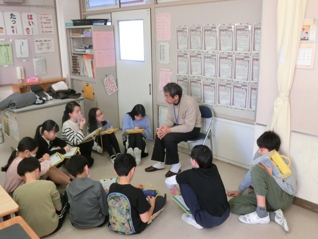 本校では、毎年城南学習支援グループの方々をお招きし、社会科の授業の一環として戦後の国民生活について経験をした方々にインタビューを行い、理解を深めるための授業を行っています。戦後の暮らしがどのようなものだったか、子どもたちが学習を通して考えたことなどを聞き、真剣にメモを取りながら考えている様子を見ることができました。