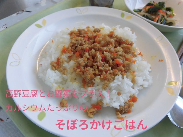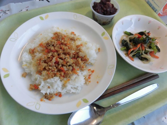 ⛄献立⛄ そぼろかけごはん・青菜のおひたし・あんこもち・牛乳