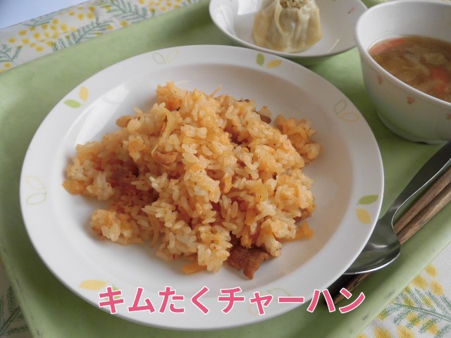 🌷献立🌷 キムたくチャーハン・ジャンボニラしゅうまい・白菜の中華スープ・牛乳