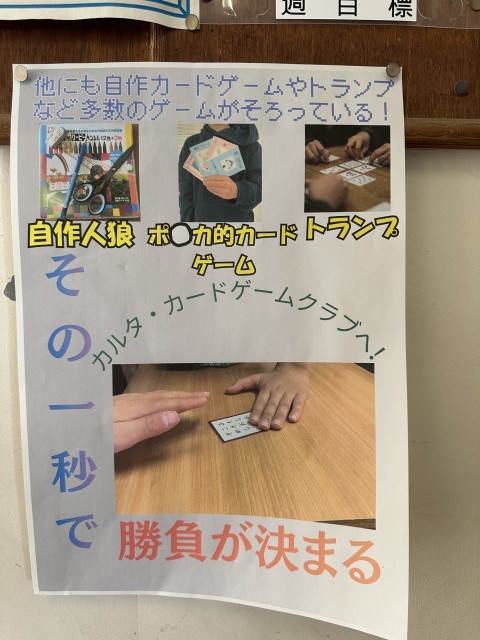 本日よりクラブ紹介週間が始まっています。階段のところにはポスターが、理科室の外には謎の物体が…どのクラブも個性的で、入ったら楽しそうです。
