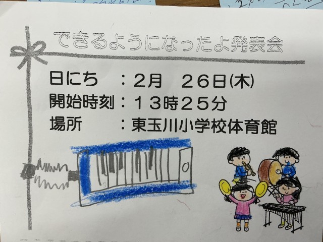 1年生が合奏の練習をしていました。今週は、できるようになったよ発表会が行われます。小学校に入ってできるようになったことをたくさん発表してくれる予定です。ぜひ、たくさんの方に足をお運びいただきたいです!