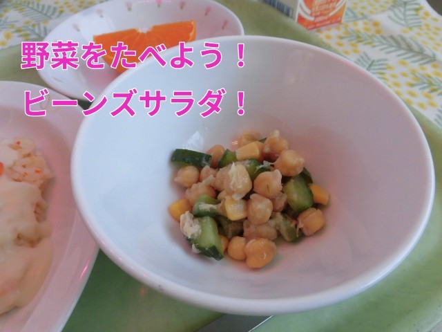 🌸献立🌸 えびクリームライス・ビーンズサラダ・くだもの(せとか)・牛乳