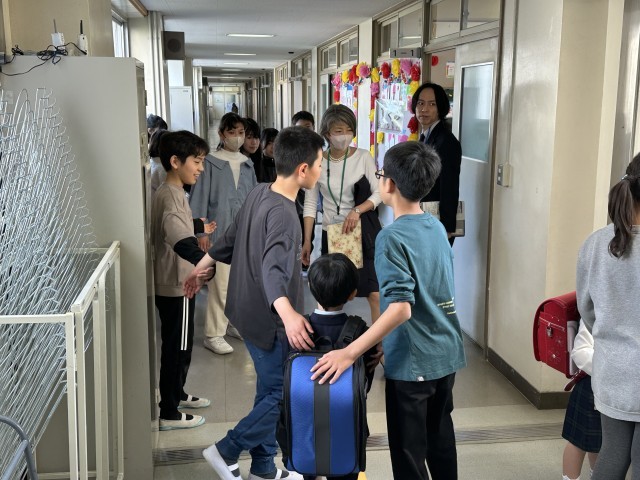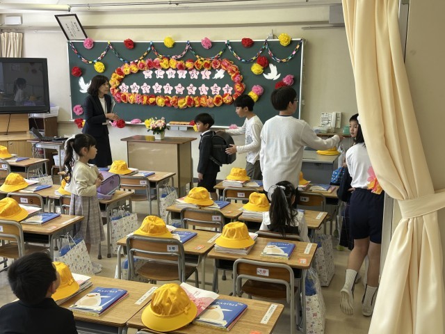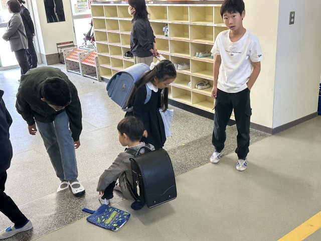 休む間もなく、6年生は1年生のお出迎えの準備です。最高学年として、しっかりとやっています!