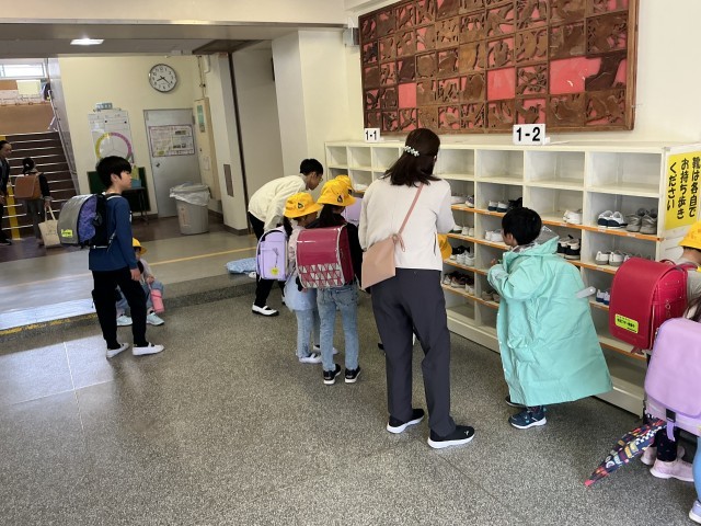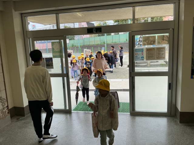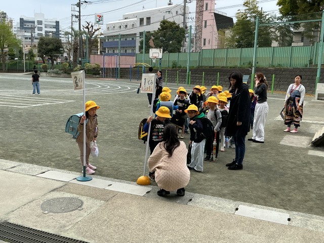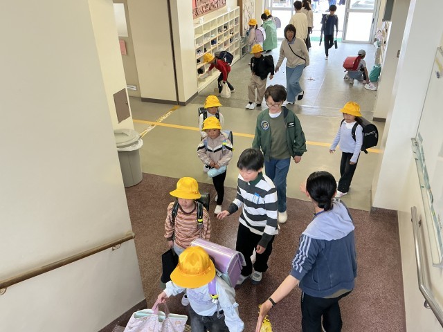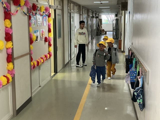 入学式を終えて、今日から1年生は初登校です!6年生のサポートもとても心強いです。
