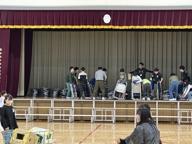 6年生は、体育館の片付けを行いました。あっという間に体育館が元の体育館に戻りました!