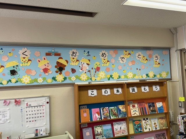 毎回、本校の読書活動支援部の皆さんが、行事や季節にあわせた装飾をしてくださっています。今は入学式仕様です。1年生もようやく慣れてきたかな・・?今週は1年生を迎える会があります!