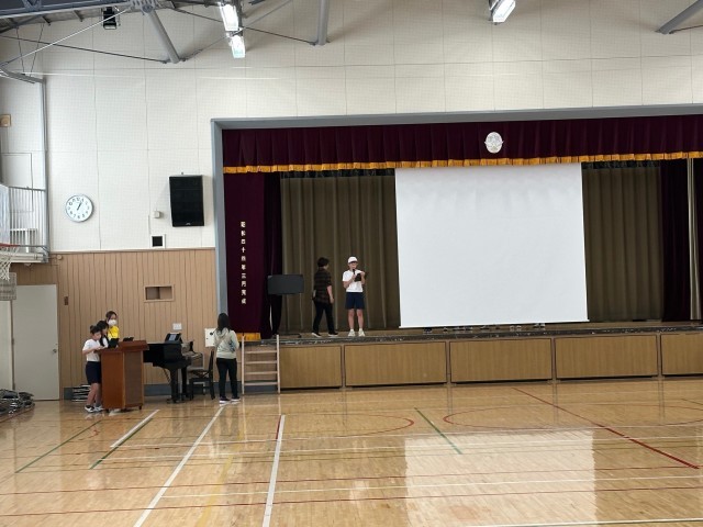 本日も、子どもたちは元気に過ごしています。1年生も真新しい体育着を着て、しっかりと整列できています。昼休みは6年生の委員長が体育館に集まり、委員会紹介集会のリハーサルをしていました。今日も元気に過ごしています!