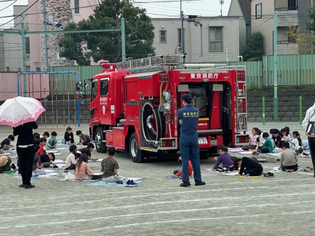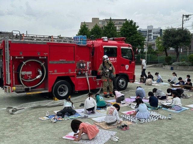 今日の3時間目は、1年生の消防車写生会がありました。途中雨が強くなってきてしまったので続きは写真を撮影したものを明日描くことになりましたが、ほとんどの子どもが消防車の輪郭をかけていました。明日以降の仕上がりが楽しみです!