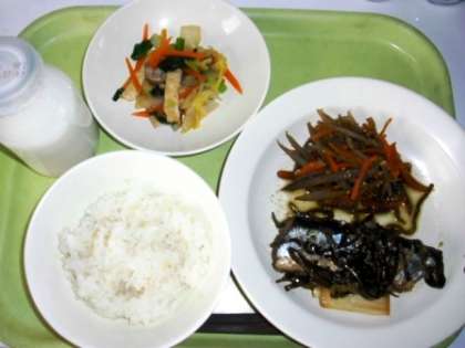 11月30日(金)は、「ごはん、サンマの松前煮、きんぴらごぼう、おひたし、牛乳」という和食献立でした。この秋、サンマは給食ですでに2回でています。過去2回は、揚げて、甘辛い味にした「さんまご飯」と「かば焼丼」です。どちらの料理でもさんまの中骨は除いてあり、揚げることで小骨が気にならなくなり、残菜は少なくよく食べていました。今回は、千切りの昆布、ネギ、生姜少々としょうゆや酒などの調味料で、半分にぶつ切りにしたさんまをじっくり煮ました。もちろん、中骨はついたままです。給食中の様子は、松前煮の昆布を嫌がったり、サンマの骨と格闘したりといった児童が多くみられ、予想していた以上に残りは多かったです。骨を除きながら食べるこのような料理を給食で出すことも、食育の一つだと改めて感じました。