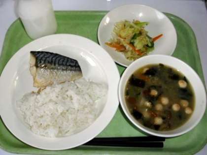 18日(火)の給食は、「サバの塩焼き定食」でした。本校ではお皿が3種類しかないため、汁物をつけると、平らなお皿にサバとごはんを配ぜんしなければいけないのが悩みです。数年後には磁器食器の導入も検討されておりますが、子どもたちは現在の給食の食器に慣れていて、上手に配ぜんして食べることができていました。