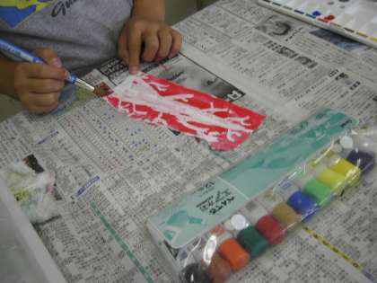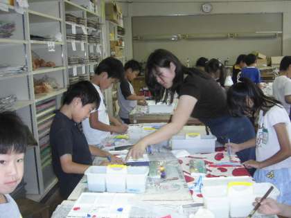 各道具の置く場所、パレットの使い方、えのぐのとり方、ふでの使い方、えのぐの濃さ、色つくりなど基本の指導がありました。