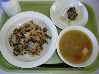 1月18日(金)の給食では、肉だねにたっぷりのニラとおからを少々加えた「おから入りにらしゅうまい」が大人気でした。