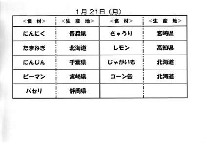 1月18日(金)の給食と21日(月)給食食材の産地について