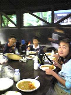 カレ−ライスは 上手にできました。5時前に食べ終わりました。予定通り進んでいます。