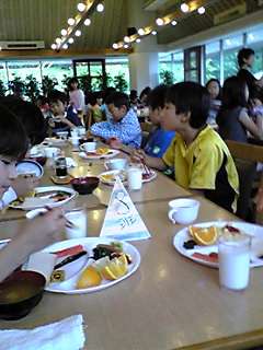 6時起床 朝の会も予定通り終了。疲れもみぜず班長は しっかり責任を果たしています。朝食も残菜はほとんどありません。