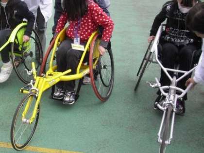 そして、2月2日(土)には、奥沢地区社会福祉協議会の皆さんとともに東京都障害者総合スポーツセンターを訪問させていただきました。参加した41名の子どもたちは、車いすバスケットボールやシッティングバレーボール、サウンドテーブルテニス(STT)などを体験しました。たまたま陸上競技用の車いすにも乗ることができ、だれもがスポーツに親しみ、体力や技能の向上に努力していることを体験を通して学習できました。