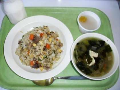 7日(木)は、どれも子どもたちが食べやすいメニューだったようで、全体的に残りは少なくよく食べていました。その中でも特に、山形県産の桃の缶詰を入れたカルピスゼリーは大変好評で、お代わりジャンケンをしている様子があちらこちらからみられました。