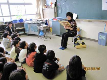 3年前から、月に1回読み聞かせをして下さっている地域のボランティアさんは、優しい語りでゆったりと本の世界へ連れて行って下さいます。保護者の方は、子どもたちが今大好きな本をタイムリーに選び読んで下さいます。勿論、担任も下校迄の時間や図書の時間に読み聞かせをして、子どもたちと一緒の時間を楽しんでいます。