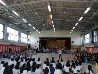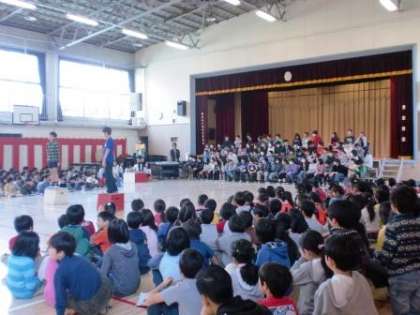 3月8日(金)に「6年生を送る会」がありました。代表委員会の児童たちが中心となり全校で6年生の卒業をお祝いしました。今年の6年生に送るメッセージは、「ありがとう夢に向かってはばたこう」でした。インタビュークイズ、各学年から6年生へ贈る出し物に続いて、お返しに6年生が「スターウォーズテーマ」の合奏を披露しました。その後、引き継ぎ式、くす玉割り、そして最後に校歌と「翼をください」を歌いました。どの学年の発表も6年生への心のこもった素晴らしいものでした。