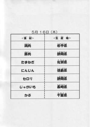 5月15日(水)の給食と5月16日(木)献立食材の産地について