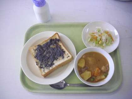 5月22日(水)のセサミトーストは黒すりごまとグラニュー糖を合わせたものをパンにぬって香ばしく焼き上げました。