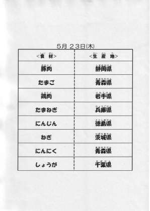 5月22日(水)の給食と5月23日(木)献立食座の産地について