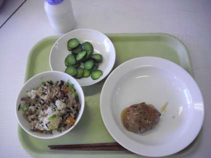 5月24日(金)のきゅうりのひとしおは、きゅうりに塩、こしょうしてシャキシャキとした食感ときゅうり本来の味を感じられるようにしました。