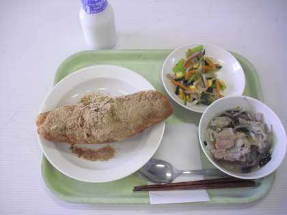6月3日(月)はあげパンでした。今回のあげパンはきな粉とココア粉末を合わせたもので大人気でした。