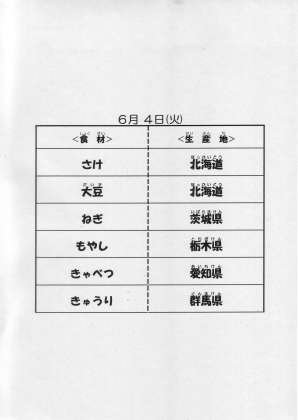 6月3日(月)の給食と6月4日(火)献立食材の産地について